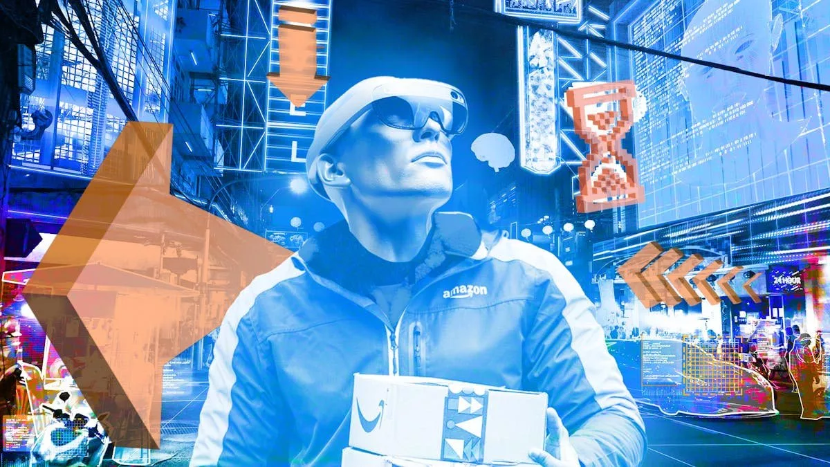 - برای رانندگان: عینک Amelia با ارائه ناوبری لحظهای روی نمایشگر، زمان تحویل را کاهش داده و وابستگی به دستگاههای دیگر را کم میکند. این امر میتواند کارایی شبکه لجستیک آمازون را بهبود بخشد.