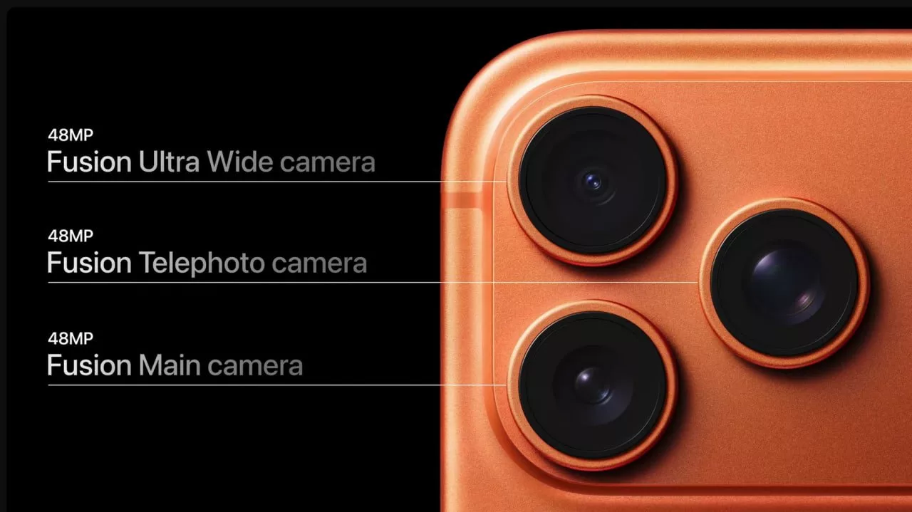 سیستم دوربین این گوشی برای اولین‌بار از سه سنسور ۴۸ مگاپیکسلی (اصلی، فوق‌عریض و تله‌فوتو) تشکیل شده است که کیفیت عکاسی در نور کم و زوم را به‌طور چشمگیری ارتقا می‌دهد. دوربین تله‌فوتو با زوم اپتیکال پیشرفته‌تر، عملکرد بهتری نسبت به نسل قبلی دارد. دوربین سلفی ۱۸ مگاپیکسلی با قابلیت Center Stage، میدان دید را به‌صورت خودکار تنظیم می‌کند و برای تماس‌های ویدیویی ایده‌آل است.