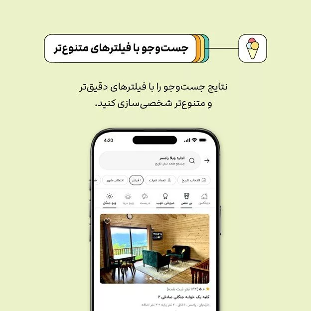 جاباما قابلیتهای فیلتر جستجو را بهبود بخشیده تا کاربران بتوانند اقامتگاهها را با دقت بیشتری انتخاب کنند. علاوه بر فیلترهای عمومی مانند مکان و قیمت، حالا امکان جستجو بر اساس ویژگیهای خاص مانند وجود استخر سرپوشیده، حیاط اختصاصی یا نزدیکی به جاذبههای گردشگری فراهم شده است. این قابلیت به مهمانان کمک میکند تا اقامتگاههایی متناسب با نیازهایشان پیدا کنند و به میزبانان امکان میدهد ویژگیهای منحصربهفرد اقامتگاه خود را برجستهتر نمایش دهند.