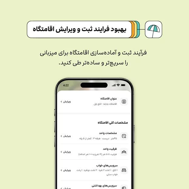 ۲. بهینهسازی فرایند ثبت و ویرایش اقامتگاه